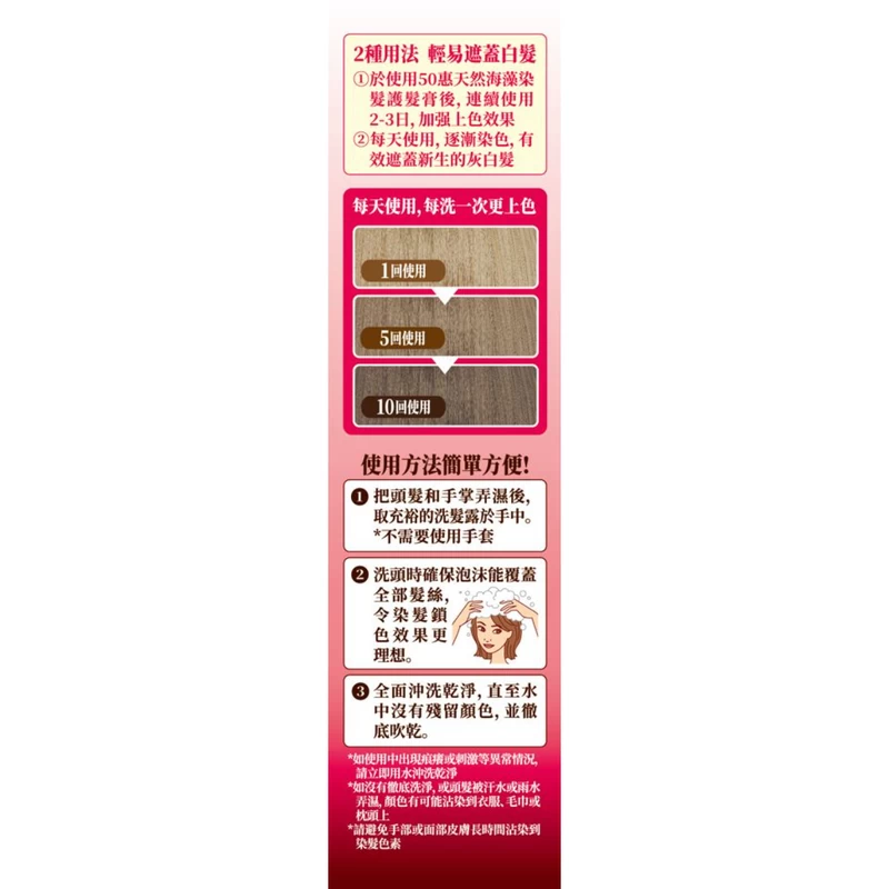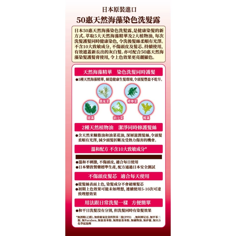 Contains natural seaweed extract to dye hair while washing hair