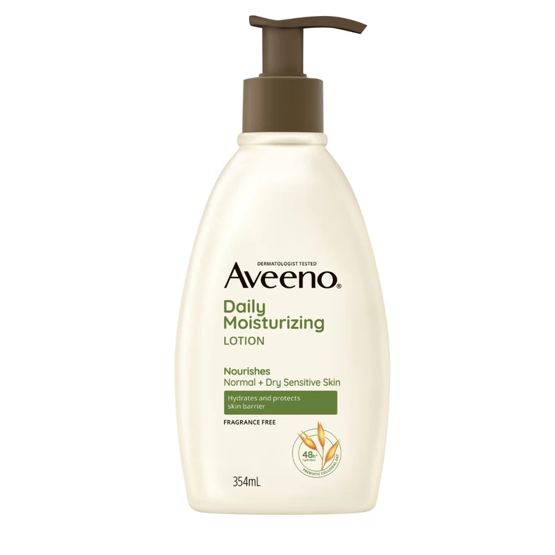 Aveeno Daily Moisturizing Lotion contains natural active ingredient, colloidal oatmeal, to deeply moisturize your skin for 48 hours. The non-greasy, fast-absorbing texture can relieve and protect dry skin by providing temporary relief of the scaling, chapping and itching associated with dry skin. This naturally nourishing formula contains no added fragrance and alcohol, which is recommended by dermatologists. Aveeno Daily Moisturizing Lotion leaves your skin soft and smooth with a naturally healthy look.