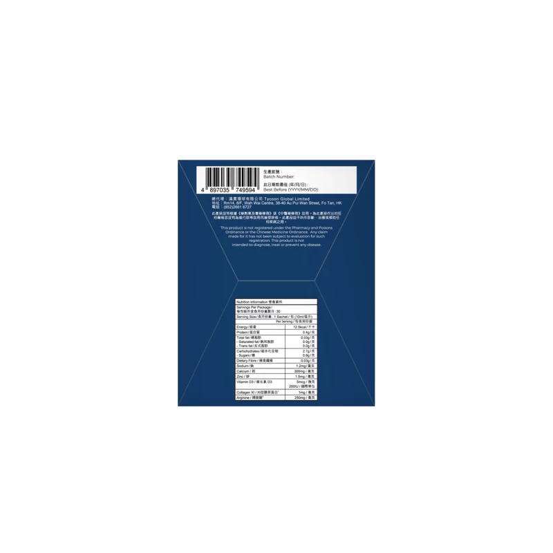 Each sachet contains high content calcium 300mg. Liquid form calcium offers extremely fast absorption. With patent micron liquefaction technology to homogenize calcium molecules, resulting in 2.6 times calcium absorption.