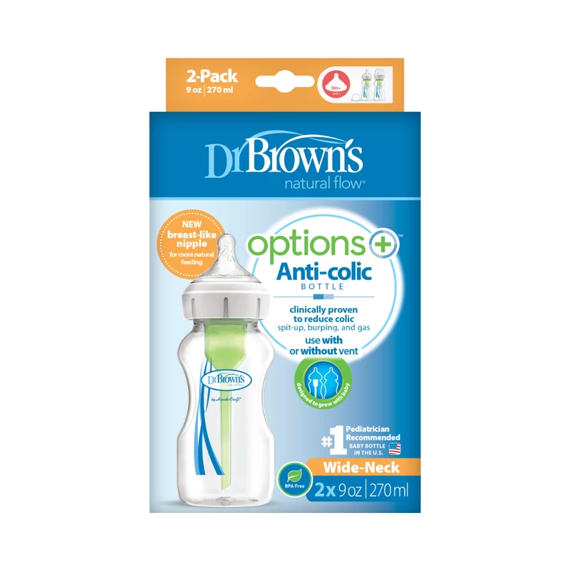 Dr.Brown’s Options+ Anti-Colic PP Bottle With Breast-Like Nipple 9oz 2pcs