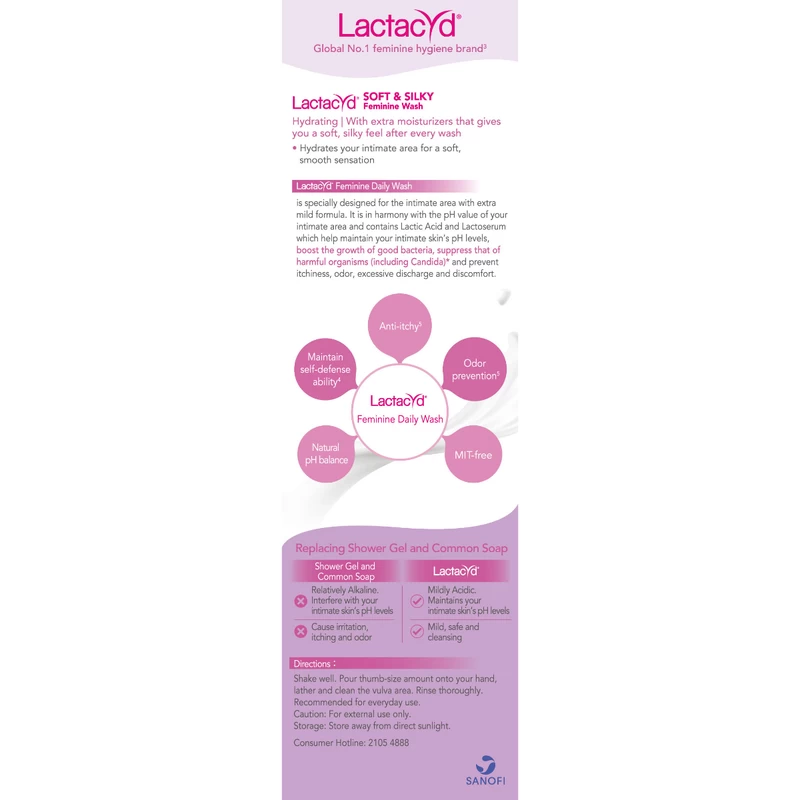 Contains Lactic Acid and Lactoserum which help maintain intimate skin’s pH levels of females, suppress the growth of harmful organisms including Candida#