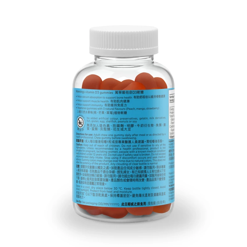 Vegetarian gummies with 3 natural flavors: Peach, mango, strawberry