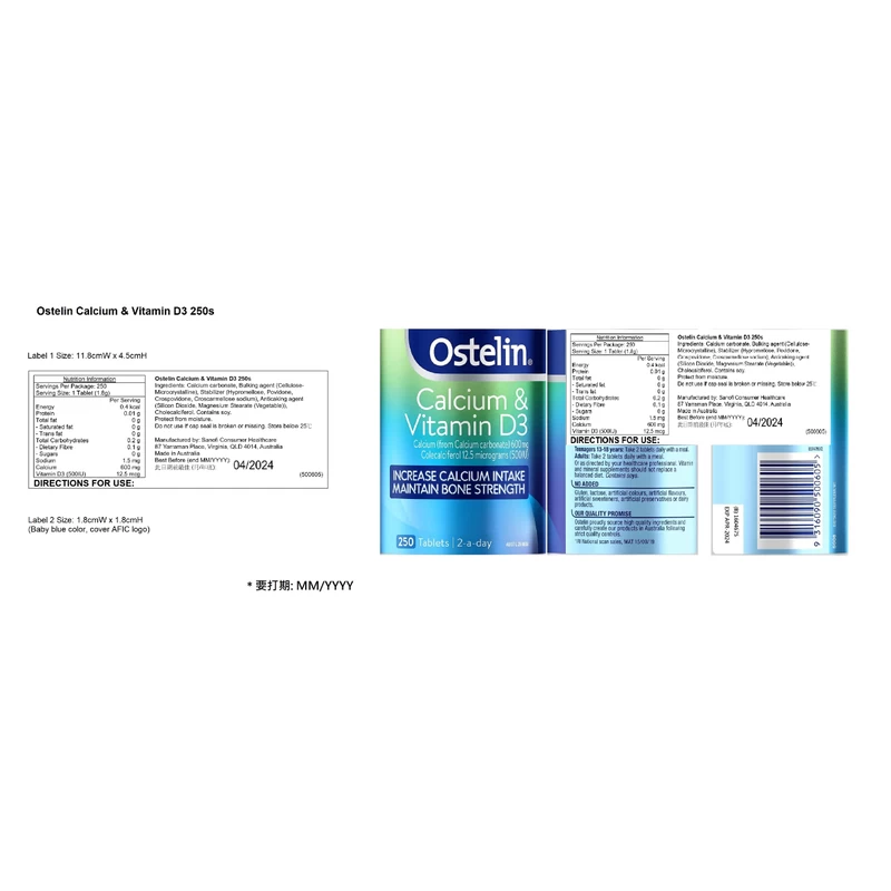 Ostelin Vitamin D & Calcium has the highest levels of Vitamin D & Calcium per tablet in a combination product. Vitamin D is essential for calcium absorption, required for healthy bones and teeth. Calcium is essential in our youth and throughout life to maximise and strengthen bones, and may assist in the prevention and treatment of osteoporosis.