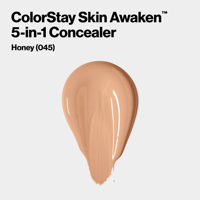 Revlon ColorStay Skin Awaken 5-in-1 Concealer is the multitasking concealer that perks up skin in 5 ways for a wide-awake look with up to 24-hour wear. Infused with real skin nourishing ingredients like caffeine and vitamin C, the high-pigment formula provides a flawless, natural coverage that is ultra-lightweight, buildable and transfer-proof. The built-in antibacterial sponge tip allows for a quick, easy and targeted application while keeping germs away. Free from added parabens, phthalates, mineral oil and fragrance.