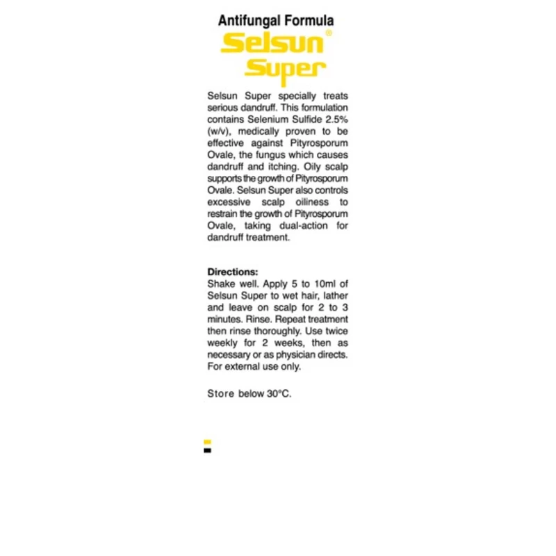 Contains Selenium Sulfide 2.5% (w/v), medically proven to be effective against Pityrosporum Ovale, the fungus which causes dandruff and itching.